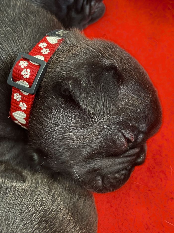 3/2/26 - to the left. One brindle male available red collar.